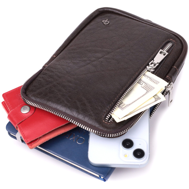 Стильна чоловіча сумка з якісної натуральної шкіри, яка має благородний блиск і приємна на дотик. Носити таку сумку зручно через плече, це дуже зручно у подорожах, коли всі найцінніші речі мають бути під рукою. Сумка доповнена якісною фурнітурою срібного кольору, шви рівні та акуратні. Аксесуар дуже універсальний і стильний для сучасних чоловіків, що підходить як для ділового, так і для повсякденного образу. Ця сумка-бананка, ідеальне поєднання практичності та витонченого стилю, що підкреслює ваш смак та увагу до деталей.