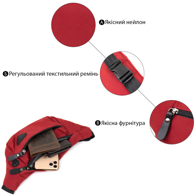 UA MarketКиївJANAТовари та послугиПоясные сумкиБананка нейлон Vintage 20639 Червона