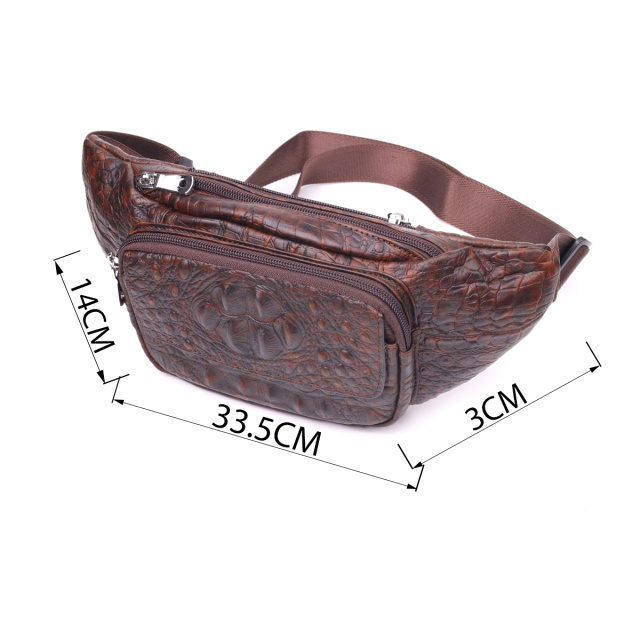 Стильна сумка для чоловіків з натуральної фактурної шкіри високої якості, з тисненням під крокодила. Бананка – одна із найпопулярніших моделей серед наших клієнтів. Така сумка стане дуже практичною та незамінною для будь-якого чоловіка. Сумка має одне основне відділення, три кишені зовні. Металева фурнітура представлена у сріблястому кольорі. Виріб стане чудовим подарунком для близької людини.
