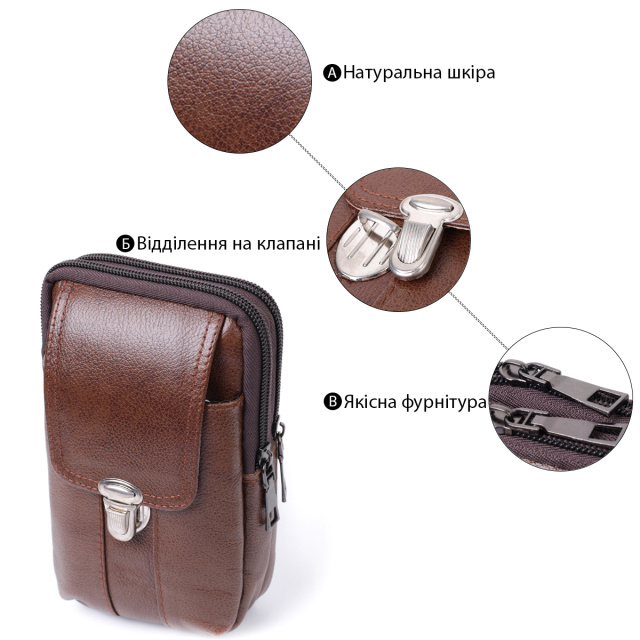 - шкіряна петелька для пояса на тильній стороні.