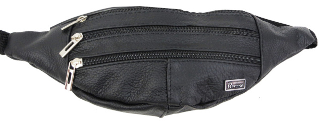 Поясна сумка, бананка з натуральної шкіри Reverse чорна 0058288-1