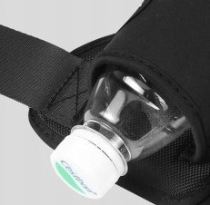 Еластичні ремінці для фіксації невеликої фляги з водою на лицьовій поверхні сумки.