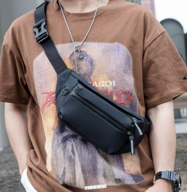 Поясний ремінець незнімного типу регулюється за довжиною. Форма виробу подовжена/обтічна, завдяки чому сумка гарно виглядає на тілі та зручно носиться.
