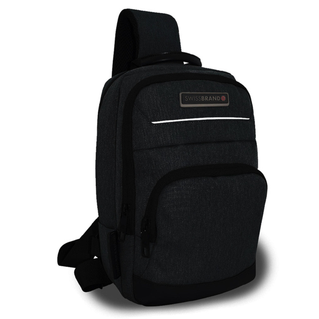 Сумка через плече Swissbrand Lagos надзвичайно зручна, адже може використовуватись як однолямочний рюкзак на праве або на ліве плече. Бічний USB-вихід дозволяє приєднати повербанк та заряджати портативні пристрої. Велике відділення має пару кишень, органайзер та м'яку нішу для планшета, завдяки чому всі речі можна розмістити по своїм місцям. Додатково сумка має середнє відділення, фасадну кишеню та кишеньку на ремені. Дихаюча сітчаста пінополіуретанова підкладка ременя та спинки сумки робить експлуатацію більш комфортною, особливо в жарку пору року.