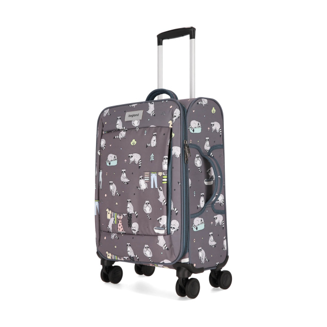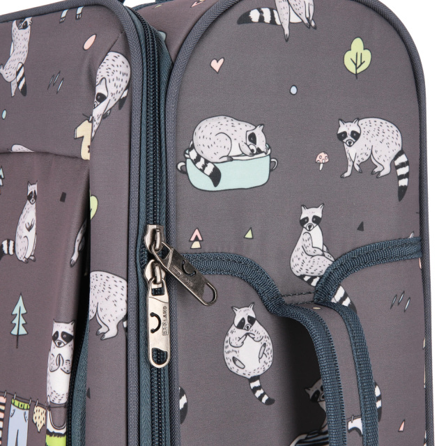 Валіза виготовлена з міцного матеріалу 600D W/R з водовідштовхувальними властивостями. Оснащена чотирма колесами, що обертаються на 360 градусів, телескопічною і боковою ручками, які забезпечують комфорт при підйомі, перенесенні та транспортуванні виробу.