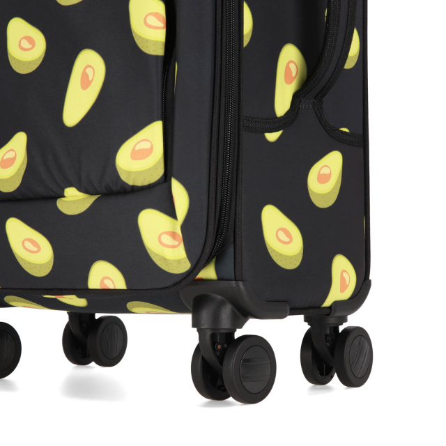 Валіза виготовлена з міцного матеріалу 600D W/R з водовідштовхувальними властивостями. Оснащена чотирма колесами, що обертаються на 360 градусів, телескопічною і боковою ручками, які забезпечують комфорт при підйомі, перенесенні та транспортуванні виробу.