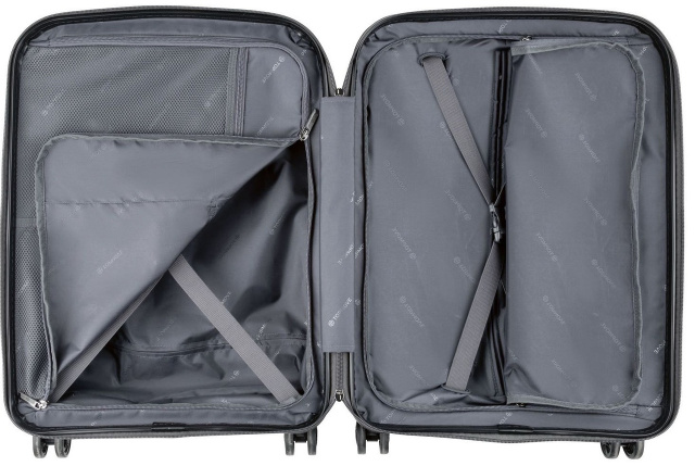Функціональний внутрішній простір із 2 роздільниками на блискавці, 2 еластичними поперечними ременями та 2 сітчастими відділеннями на блискавці.