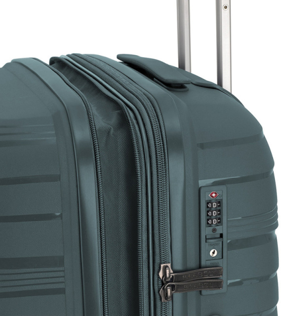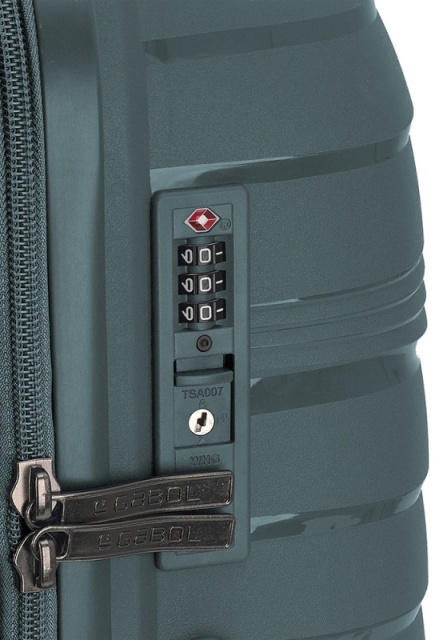 Валіза Gabol Kiba (S) Verde (122022-004) оснащена чотирма повноповоротними колесами з можливістю незалежного розвороту кожного колеса на 360°. Системою передбачено рівномірний перерозподіл навантаження на кожне колесо, що у свою чергу сприяє плавному руху та маневреності валізи, докладаючи при цьому мінімум зусиль. Колеса виготовлені із високотемпературного термопластичного поліуретану (TPU). Матеріал має міцність порівнянну з пластиком, гнучкістю силікону, а також має підвищену стійкість до перепадів температур. Відмінною особливістю коліс із TPU матеріалу є зниження шуму до мінімуму під час руху валізи по нерівній поверхні. Завдяки стійкості до стирання матеріал коліс відрізняється тривалим терміном експлуатації. Валіза обладнана фірмовим кодовим замком з функцією митного огляду TSA (Transportation Security Administration – Адміністрація з безпеки на транспорті).