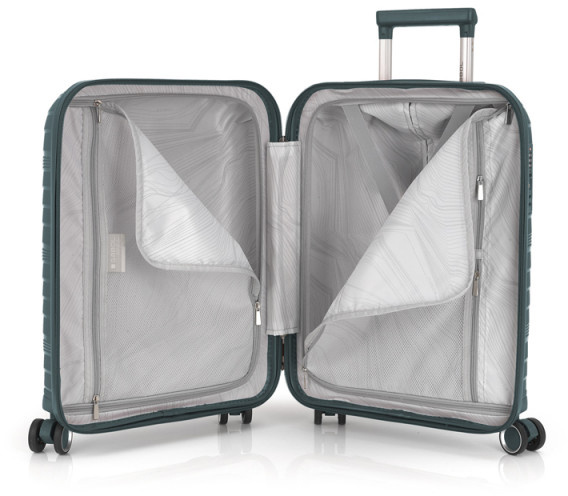 Корпус валіз Gabol серії Kiba виконаний з міцного та довговічного матеріалу - поліпропілену, що дуже важливо для валіз які перевозяться в багажних відділеннях. Внутрішній об'єм розділений перегородкою на два відділення та має ремені для фіксації речей усередині.
