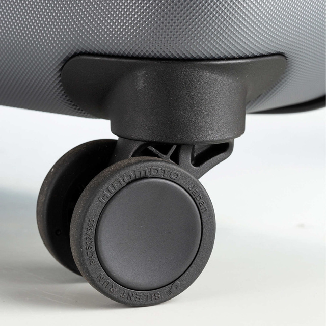 - HINOMOTO WHEELS - колеса японської компанії Hinomoto загальновизнані як найкращі колеса для сумок та валіз. Колеса забезпечують високу маневреність, плавне кочення, рівномірний розподіл навантаження. Колеса кріпляться на 4 гвинти зсередини, що забезпечує високу стійкість при ударному навантаженні з будь-якого боку і дозволяє їх замінити у разі зносу. Дана модель оснащена спареними колесами, що обертаються на 360° з підшипником в основі. Спарені колеса забезпечують краще зчеплення, маневреність і мають більшу зносостійкість.