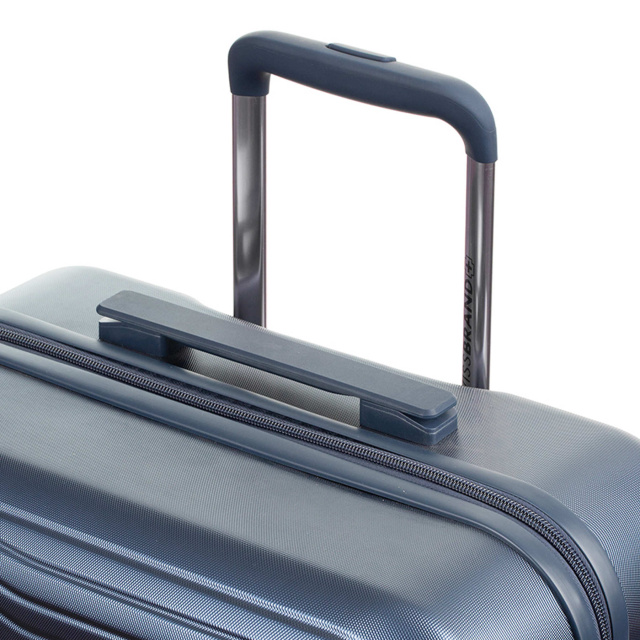 - ALUMINIUM TROLLEY - висувна телескопічна, алюмінієва ручка фіксується у двох положеннях. Для більшої надійності пластиковий верх ручки закріплений чотирма гвинтами. Телескопічна система повністю знімна, і у разі пошкодження може бути замінена.
