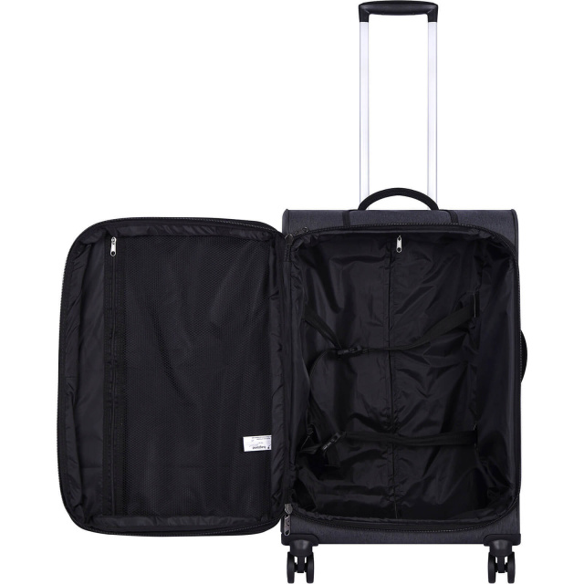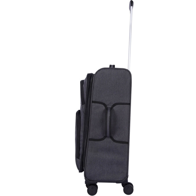 Валіза виготовлена з щільного оксфорду 600D меланж із водовідштовхувальними властивостями та має захисний каркас, який оберігає речі під час транспортування. Завдяки легкій вазі модель зручна для авіаподорожей, коли важливий кожен кілограм.