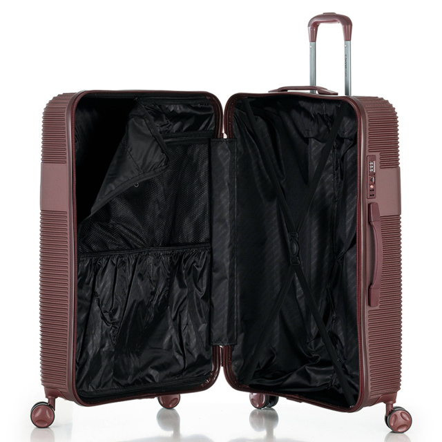 - EIGHT WHEELS LUGGAGE - дана модель оснащена чотирма спареними колесами, що обертаються на 360°. Спарені колеса забезпечують кращий розподіл ваги та стійкість валізи, відмінне зчеплення, маневреність та мають велику зносостійкість. Колеса кріпляться на 4 гвинти зсередини, що забезпечує високу стійкість при ударному навантаженні з будь-якого боку, і дозволяє їх замінити у разі зношування.
