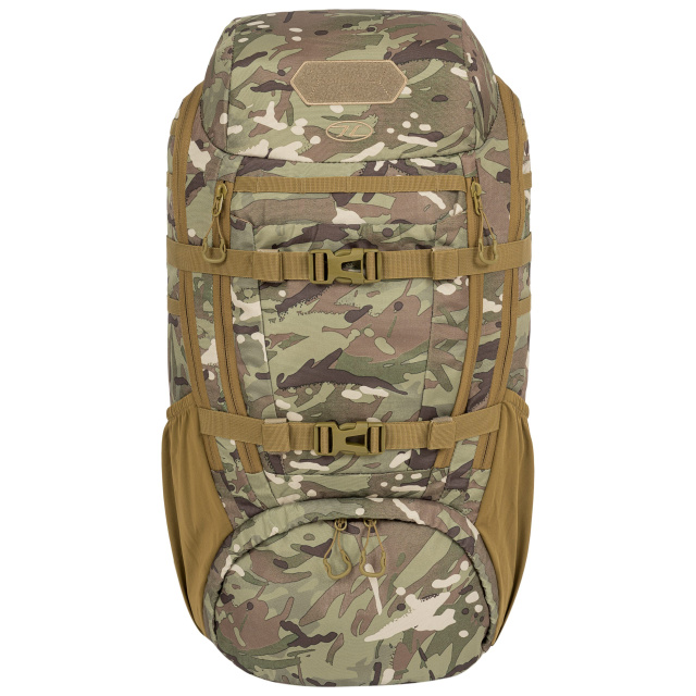 Highlander Eagle 3 Backpack 40L HMTC (TT194-HC) - місткий і надійний рюкзак для тривалих виходів. Модель виготовлена із міцного водостійкого поліестеру 600D XTP із поліуретановим покриттям, має систему кріплень MOLLE, велике відділення на блискавках для зберігання спорядження в польових умовах, а також дві еластичні бічні кишені. М'яка спинка, компресійні ремені та ручка для перенесення роблять цей рюкзак зручним для користування. Регульовані лямки з м’якими підкладками та регульований поясний ремінь розподіляють навантаження, щоб забезпечити Вам комфорт під час щоденного носіння. Все це гарантує, що даний рюкзак витримає тривалу експлуатацію.