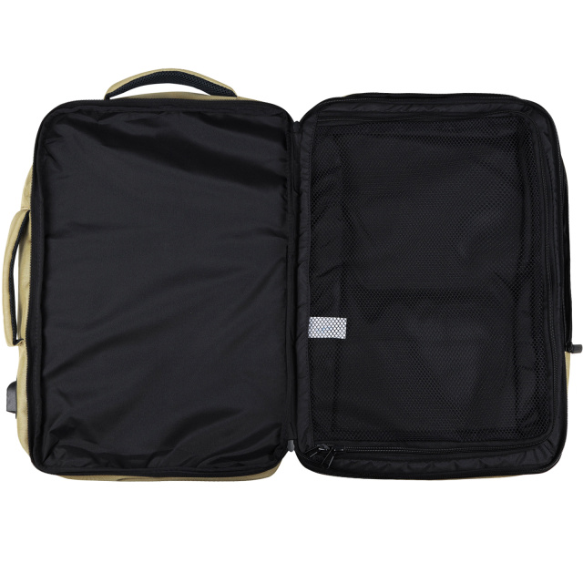 Рюкзак має основне відділення з блискавкою по периметру, яке можна повністю відкрити та легко розкласти необхідні речі. Додатково є відсік із сіткою для аксесуарів та окрема кишеня з застібкою для надійної фіксації ноутбука чи планшета. Ззовні спереду наявні невеликі відсіки для дрібниць, а ззаду — кишеня «Антизлодій» для зберігання цінних речей.