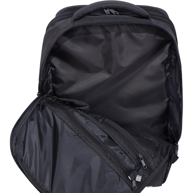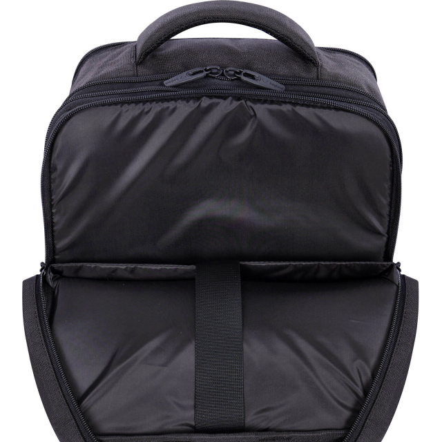 Рюкзак має основне відділення з блискавкою по периметру, яке можна повністю відкрити та легко розкласти необхідні речі. Додатково є відсік із сіткою для аксесуарів та окрема кишеня з застібкою для надійної фіксації ноутбука чи планшета. Ззовні спереду наявні невеликі відсіки для дрібниць, а ззаду — кишеня «Антизлодій» для зберігання цінних речей.