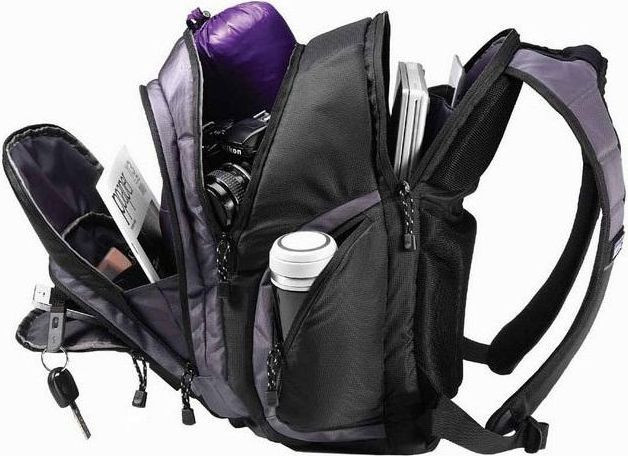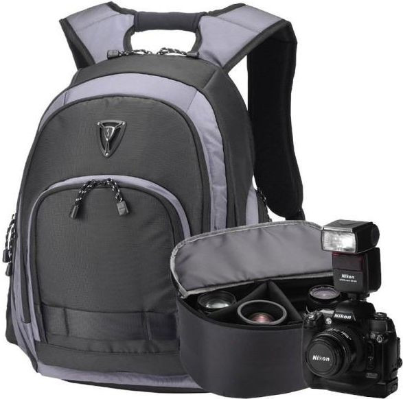 У комплекті із рюкзаком йдемо спеціальна сумка для дзеркальної фотокамери зі змінними об'єктивами.