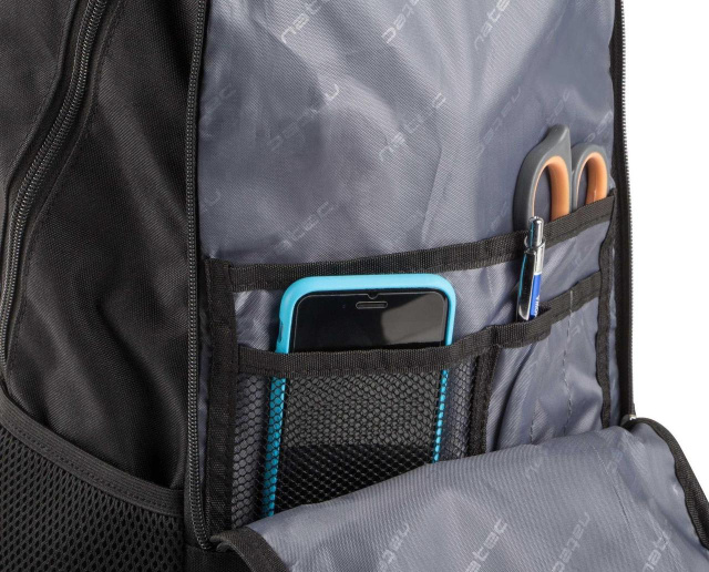 Одна вертикальна кишеня на блискавці на лицьовій стороні рюкзака.