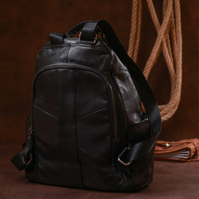 Практичний та функціональний рюкзак з натуральної високоякісної шкіри з відмінними показниками міцності та стійкості до зношування. Внутрішнє наповнення дуже багате і представлене у вигляді просторого основного відділення та різних кишень різного розміру. Шлейки регулюється по довжині та зроблені у поєднанні міцного текстилю та натуральної шкіри.