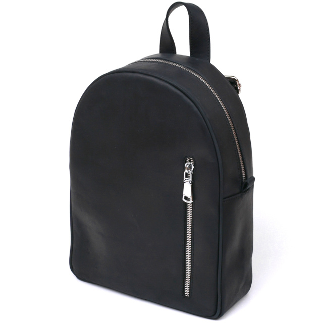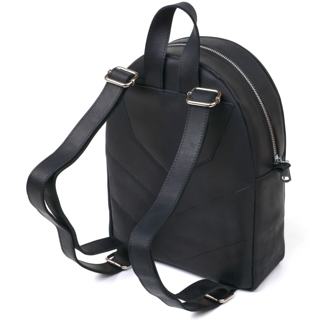 Чудовий жіночий рюкзак у вінтажному стилі для повсякденного використання від українського виробника. Виконано цю модель з натуральної висококласної шкіри з відмінними характеристиками. Колір виробу - універсальний чорний, гладка фактура матова. Шлейки регулюються по довжині і виконані з натуральної шкіри.