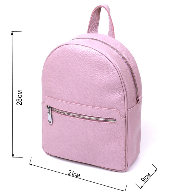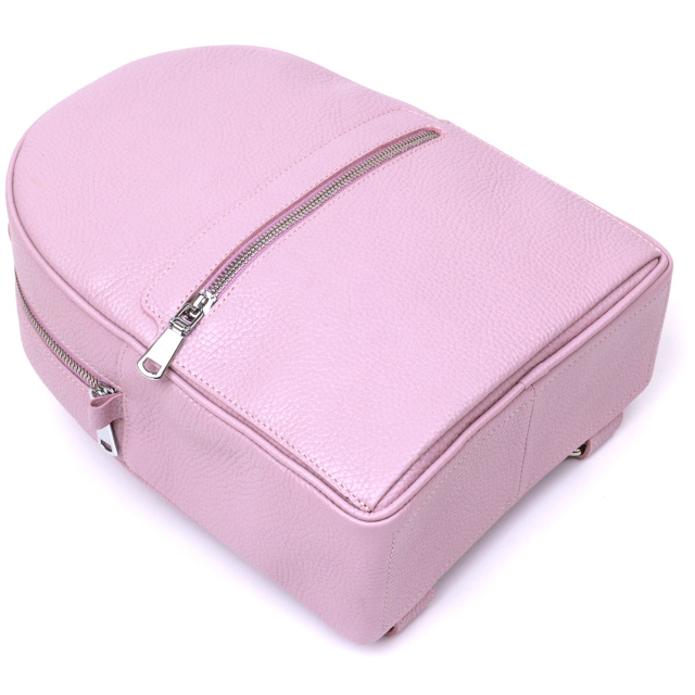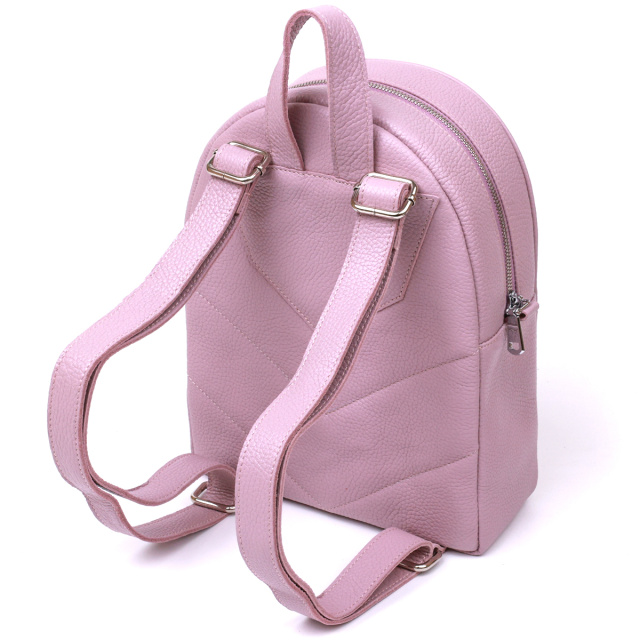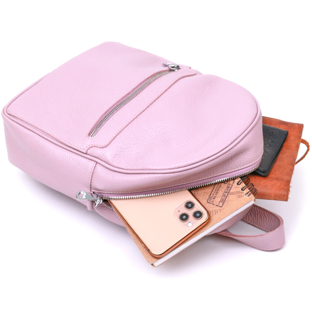 Чудовий жіночий рюкзак для поціновувачів простого та стильного дизайну. Матеріал виготовлення – натуральна шкіра високого класу з відмінними характеристиками та показниками стійкості до зношування. Дана модель виконана в ніжному фіолетовому кольорі і має приємну на дотик зернисту фактуру. Такий рюкзак стане чудовим подарунком на будь-яке свято.