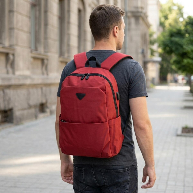 Модель має основне відділення на блискавці. Усередині передбачені дві накладні кишені для мобільного та ущільнена кишеня на липучці під ноутбук. Така конструкція робить рюкзак зручним для роботи, навчання та поїздок. У комплекті йде USB-шнур, а сам рюкзак доповнений відповідним роз’ємом, що особливо зручно для щоденного використання.