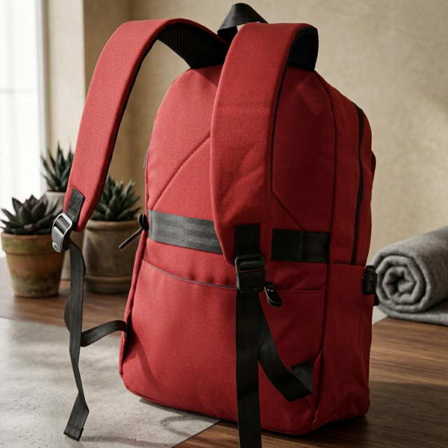 На лицьовій стороні розташовані дві кишені на блискавках, на тильній стороні передбачена кишеня на блискавці, а з боків — дві відкриті кишені. Додатковою перевагою є петелька для килимка на тильній стороні та ручка для носіння в руках. Усередині передбачена підкладка з тканини. Рюкзак також має ущільнену спинку, яка допомагає зменшити навантаження і робить модель комфортнішою для щоденного використання.
