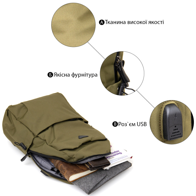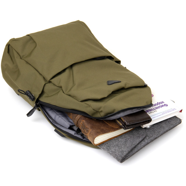 Матеріал: текстиль; Колір: оливковий; Розміри (ШхВхГ, см): 30х45х13. Країна виробник: Китай. Особливості: - основне відділення на блискавці;