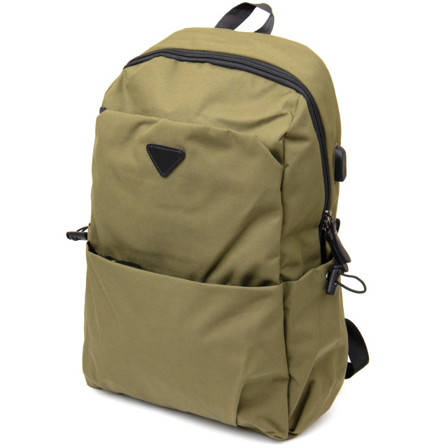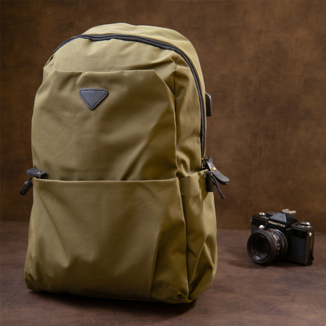 Текстильний функціональний рюкзак дуже легкий і практичний в оливковому кольорі. Виріб має оптимальний розмір для вашої зручності. Функціонал рюкзака продуманий під сучасного клієнта, який не уявляє своє життя без гаджетів. Роз'єм і шнур в комплекті для вашої зручності. На тильній стороні петелька, яка дозволить вам зафіксувати каремат. З таким рюкзаком зручно відправитися в подорож або на відпочинок, або використовувати його в якості рюкзака під ноутбук. Виріб - відмінний варіант для занять спортом. Закривається рюкзак на блискавку і має одне основне відділення. Рюкзак має ущільнену спинку, яка фіксує вашу спину і зменшує навантаження. Тканинний рюкзак стане хорошим подарунком для ваших близьких і найголовніше дуже корисним і необхідним.