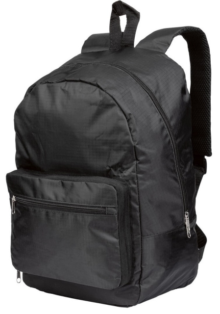 Рюкзак складається в маленьку сумочку, яка утворюється вивертанням передньої кишені навиворіт.