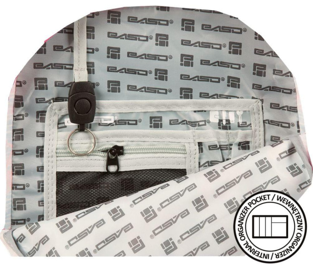 В основному відділенні є перегородка (для ноутбука), у другому відділенні органайзер із кишенею на блискавці, тримач для ключів.
