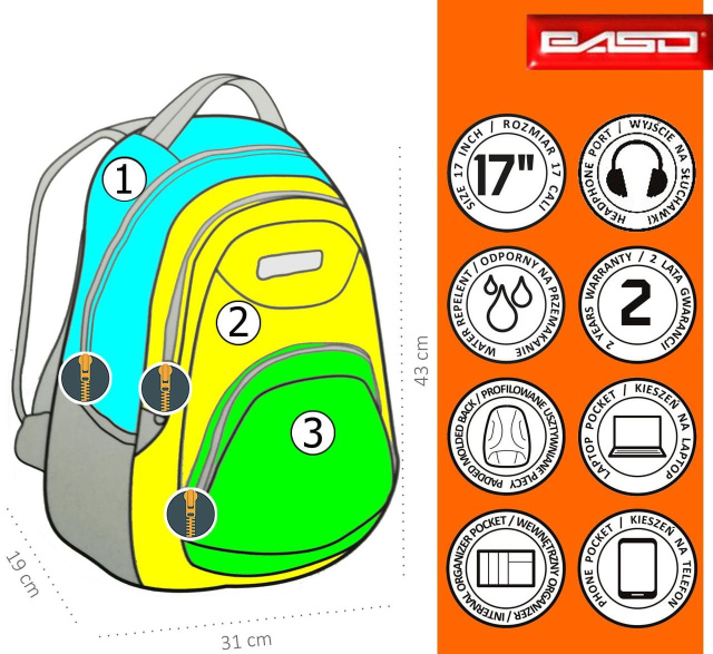 Рюкзак виготовлений із міцної синтетичної тканини, стійкої до блякнення і з водовідштовхувальними властивостями.