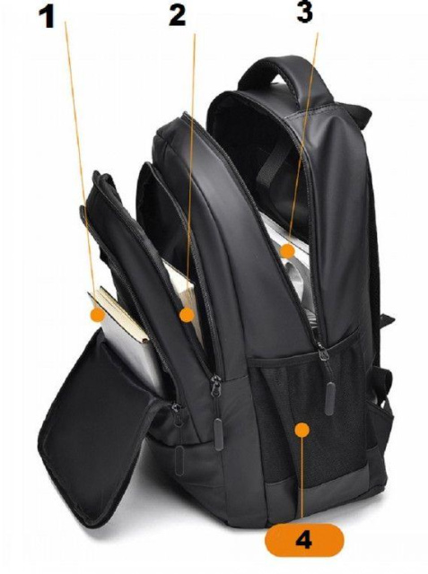 У рюкзаку є одне велике відділення здатне вмістити ноутбук і документи, а також внутрішні кишені для дрібних предметів.