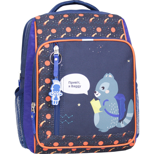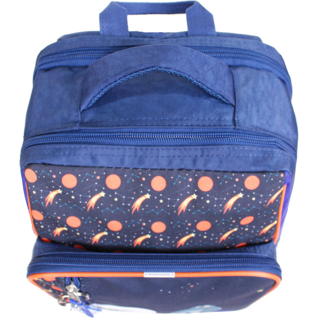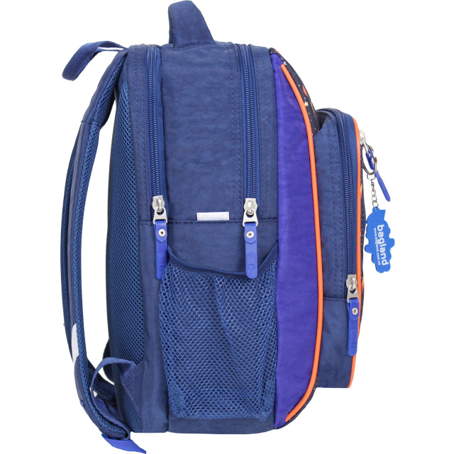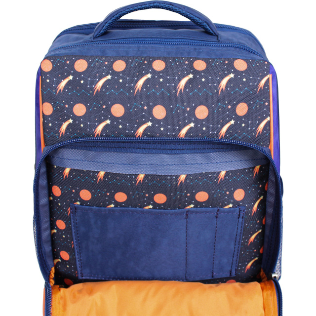 У рюкзаку — два просторі відділення на блискавці, де легко помістяться підручники, зошити або улюблені іграшки. Є також менше за розміром відділення з органайзером для канцтоварів — з ним можна обійтися без пенала. Спереду розташована зручна кишеня на блискавці для дрібниць — наприклад, телефону чи ключів. По боках — сітчасті кишені для пляшки з водою або термоса.