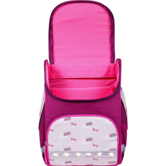 Ця модель оснащена основним великим відділенням, у якому помістяться всі необхідні канцтовари та навіть спортивна форма. Додатково всередині є відсік для зошитів, блокнота й альбому для малювання. Спереду є окрема кишеня на блискавці для пенала, а збоку розташовані кишені для пляшки з водою чи термочашки.