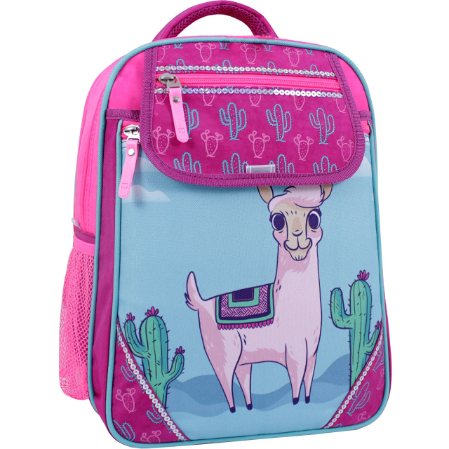 Ця модель має два відділення: найбільше підійде для підручників, зошитів, іграшок, а менше — для кольорового паперу й картону, альбому для малювання тощо. Спереду ззовні є кілька кишень для всього необхідного. Додатково є бічні відсіки з сітки для пляшки з водою чи термоса.