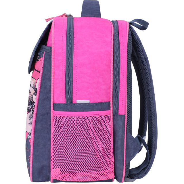 Ця модель має два відділення: найбільше підійде для підручників, зошитів, іграшок, а менше — для кольорового паперу й картону, альбому для малювання тощо. Спереду ззовні є кілька кишень для всього необхідного. Додатково є бічні відсіки з сітки для пляшки з водою чи термоса.