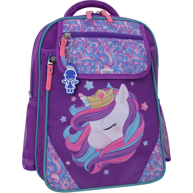 Ця модель має два відділення: найбільше підійде для підручників, зошитів, іграшок, а менше — для кольорового паперу й картону, альбому для малювання тощо. Спереду ззовні є кілька кишень для всього необхідного. Додатково є бічні відсіки з сітки для пляшки з водою чи термоса.