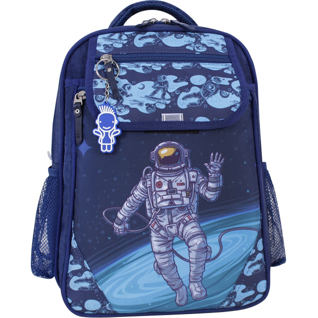 Ця модель має два відділення: найбільше підійде для підручників, зошитів, іграшок, а менше — для кольорового паперу й картону, альбому для малювання тощо. Спереду ззовні є кілька кишень для всього необхідного. Додатково є бічні відсіки з сітки для пляшки з водою чи термоса.