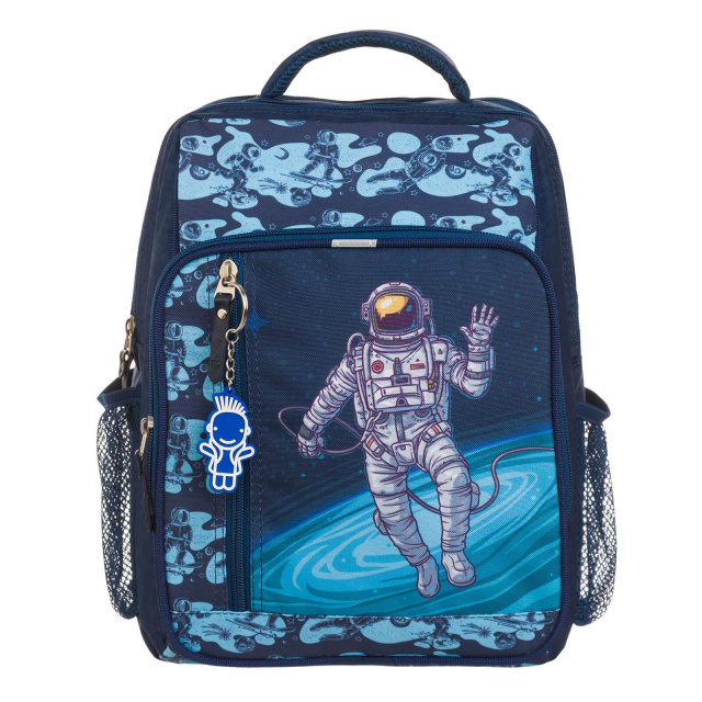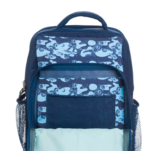 У рюкзаку — два просторі відділення на блискавці, де легко помістяться підручники, зошити або улюблені іграшки. Є також менше за розміром відділення з органайзером для канцтоварів — з ним можна обійтися без пенала. Спереду розташована зручна кишеня на блискавці для дрібниць — наприклад, телефону чи ключів. По боках — сітчасті кишені для пляшки з водою або термоса.