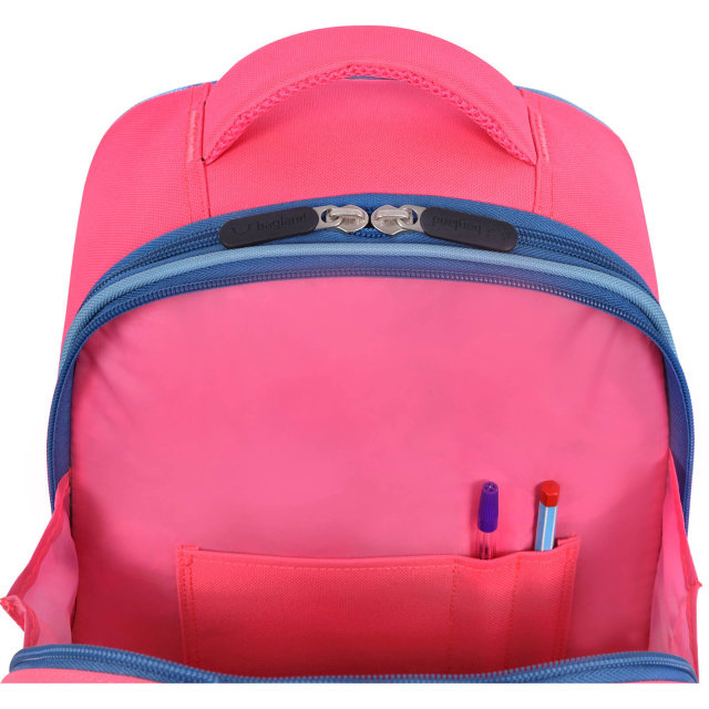 У цій моделі — два великих відсіки, тож розмір і місткість дають змогу брати з собою все необхідне для школи чи навіть короткої мандрівки. Основне відділення підходить для підручників, зошитів і канцелярського приладдя, а також туди поміститься спортивна форма та ланчбокс із перекусом. Другий відсік менший за обʼємом, проте також місткий — тут є додаткова кишеня-органайзер для канцтоварів.