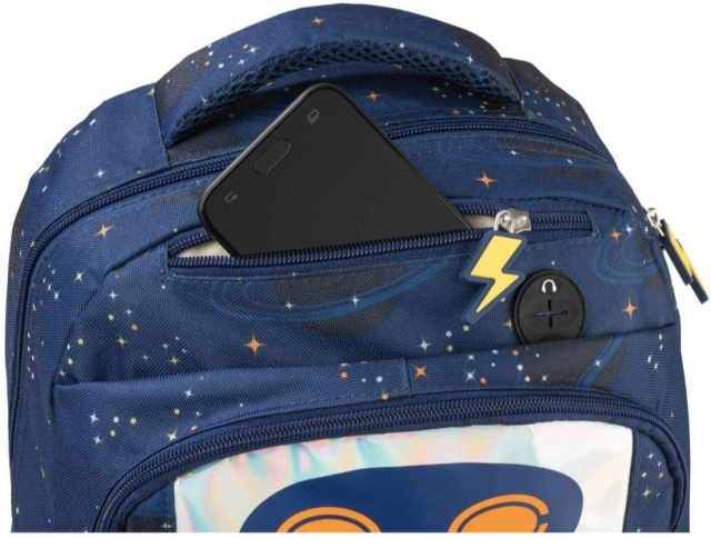 М'яке відділення для смартфона з портом для навушників у верхній частині рюкзака.