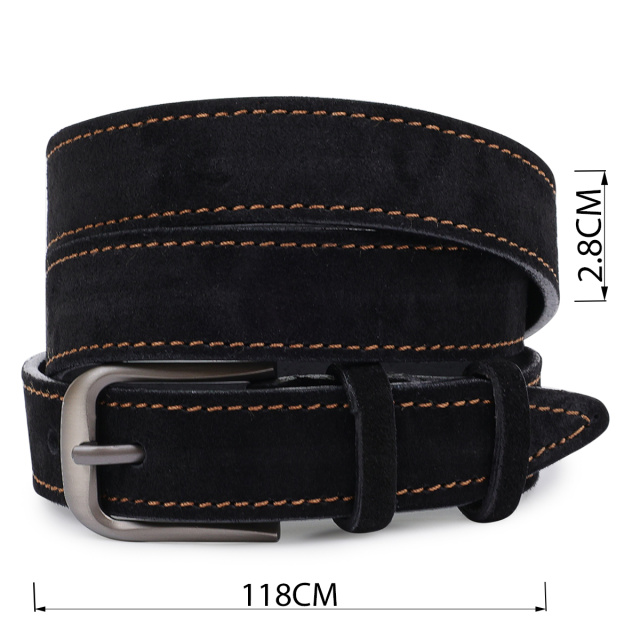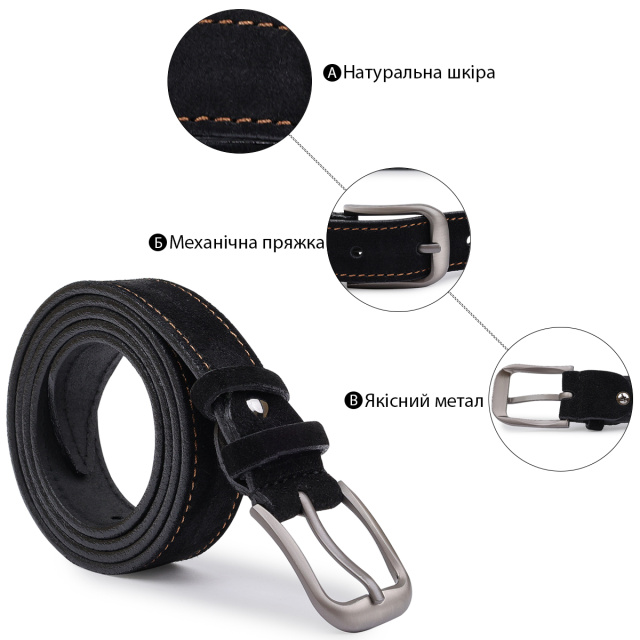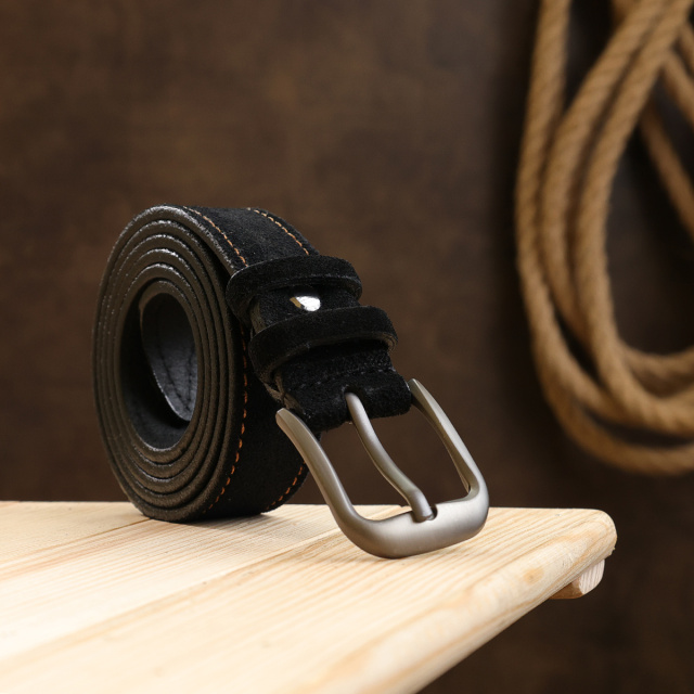 Чудовий замшевий ремінь високої якості виконання від відомого українського виробника. Має універсальний чорний колір і класичну пряжку, тому підійде під будь-який вид одягу і взуття. Виконано ремінь з натуральної міцної шкіри підвищеної зносостійкості.