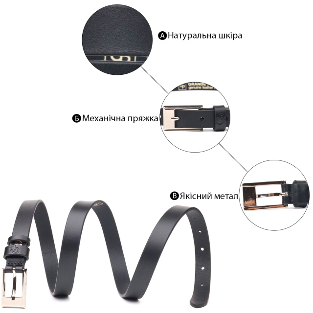 Практичний жіночий ремінь із високоякісної італійської шкіри, в класичному чорному кольорі. Аксесуар буде відмінно поєднуватись, як зі штанами, так і з сукнею, блузкою або тунікою. Пряжка виконана з якісної фурнітури, з гострими краями, дуже акуратна та стильна. Колір пряжки: срібло. Тиснення логотипу бренду додає виробу стилю, а також є запорукою якості та оригінальності продукції. Шкіряний ремінь буде завжди актуальним подарунком для себе, подруги чи колеги.