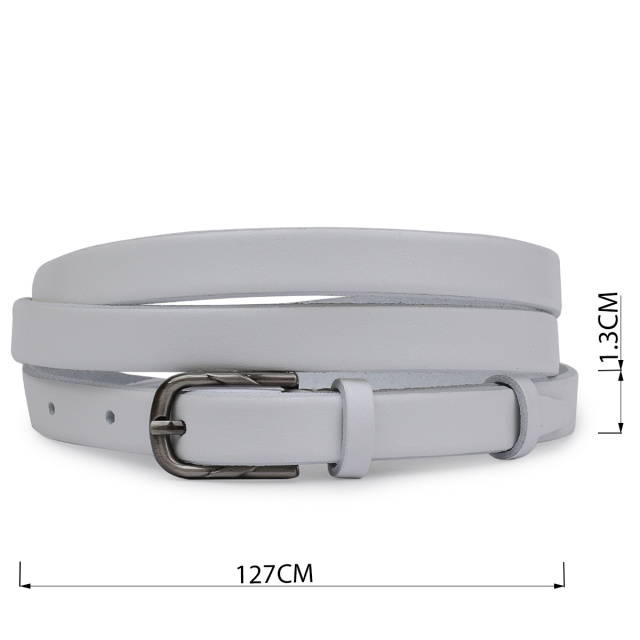 Універсальний жіночий поясок в білому кольорі від українського виробника. Має красиву акуратну пряжку в класичному стилі. Матеріал виготовлення - натуральна високоміцна шкіра з відмінними показниками в процесі експлуатації. Такий ремінь стане хорошим і практичним подарунком на будь-яке свято.