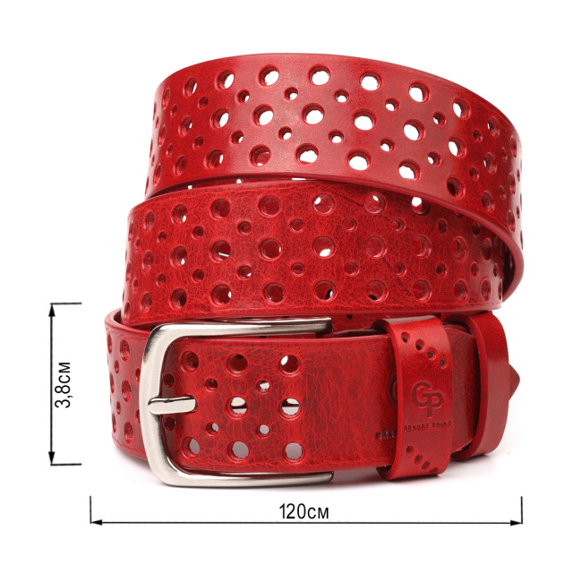 Стильний ремінь із натуральної шкіри з перфорацією від українського виробника. Аксесуар має незвичайну фактуру, акуратно пошитий, довжина регулюється у менший бік. Класична пряжка в мінімалістичному дизайні. Якісний шкіряний ремінь стане гарним подарунком на будь-яке свято.