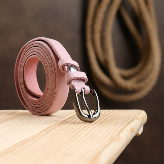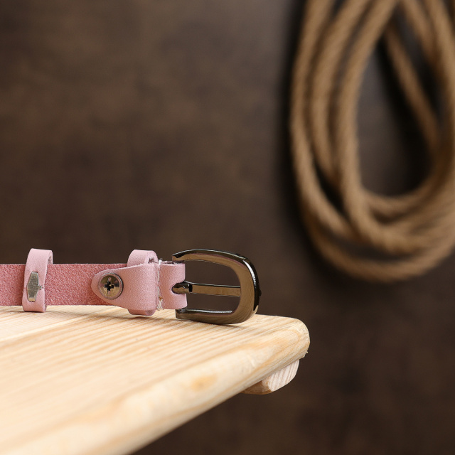 Тонкий жіночий ремінь з класичною пряжкою від українського виробника. Має гарний ніжно-рожевий колір і приємну гладку фактуру. Виконана дана модель з високоміцної натуральної шкіри високого класу. Ремінь стане стильним акцентом у Вашому образі.