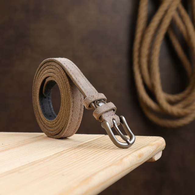 Цікавий жіночий тонкий ремінь від українського виробника. Має гарний світло-сірий колір, приємну на дотик фактуру і класичну пряжку. Матеріал виготовлення - натуральна високоякісна шкіра з відмінними показниками зносостійкості. Такий ремінець доповнить Ваш образ і стане улюбленим аксесуаром у Вашому гардеробі.