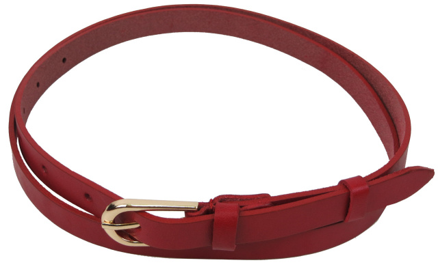 Узенький женский поясок, ремень из натуральной кожи Skipper, Украина 1354-15 цвет красный, ширина 1,5 см