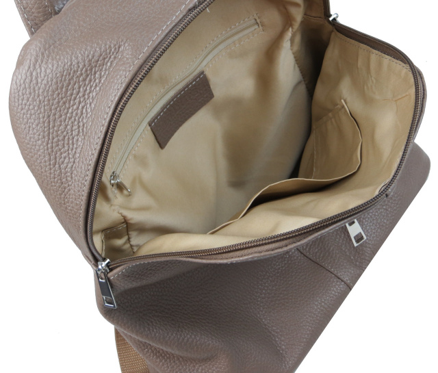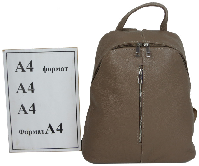 Стильний та практичний рюкзак з м'якої шкіри базова модель, яка легко комбінується з міськими образами від повсякденного до ділового. Рюкзак декорований сріблястою фурнітурою, закривається на блискавку. Наплічні лямки легко регулюються по довжині.